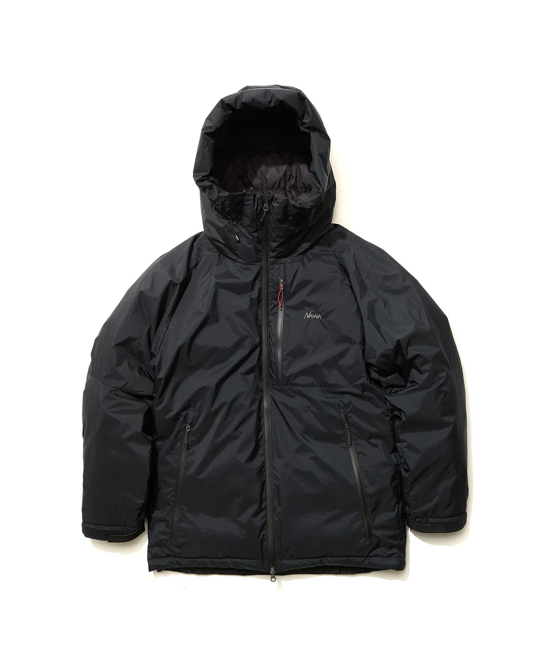 フロントには止水ファスナーを採用し、冷たい風や雨の侵入をブロック。