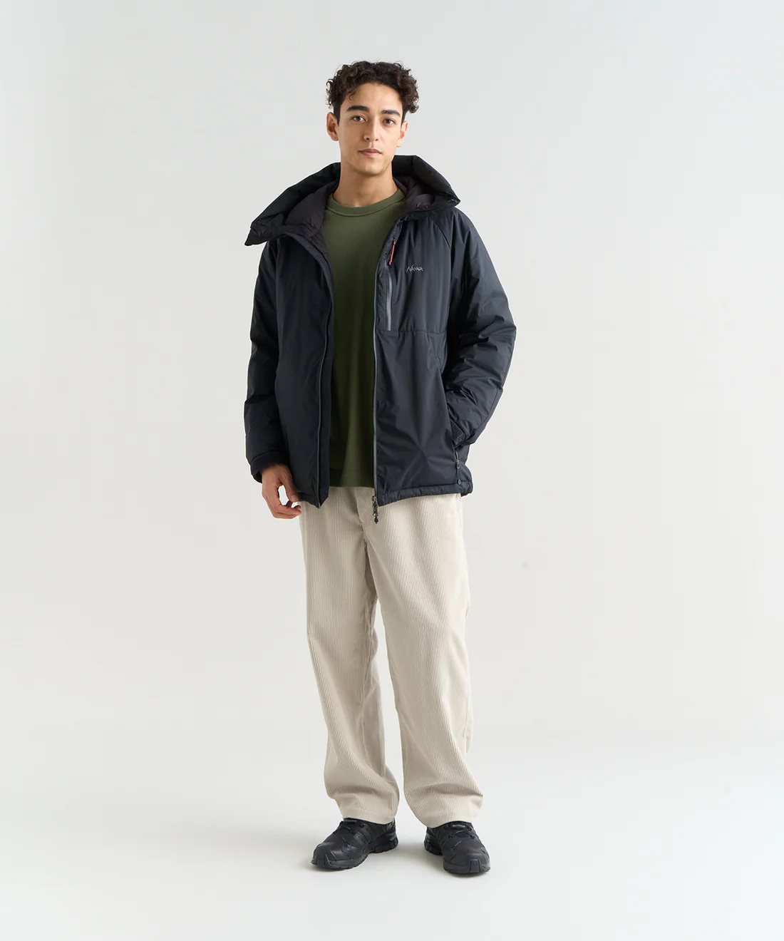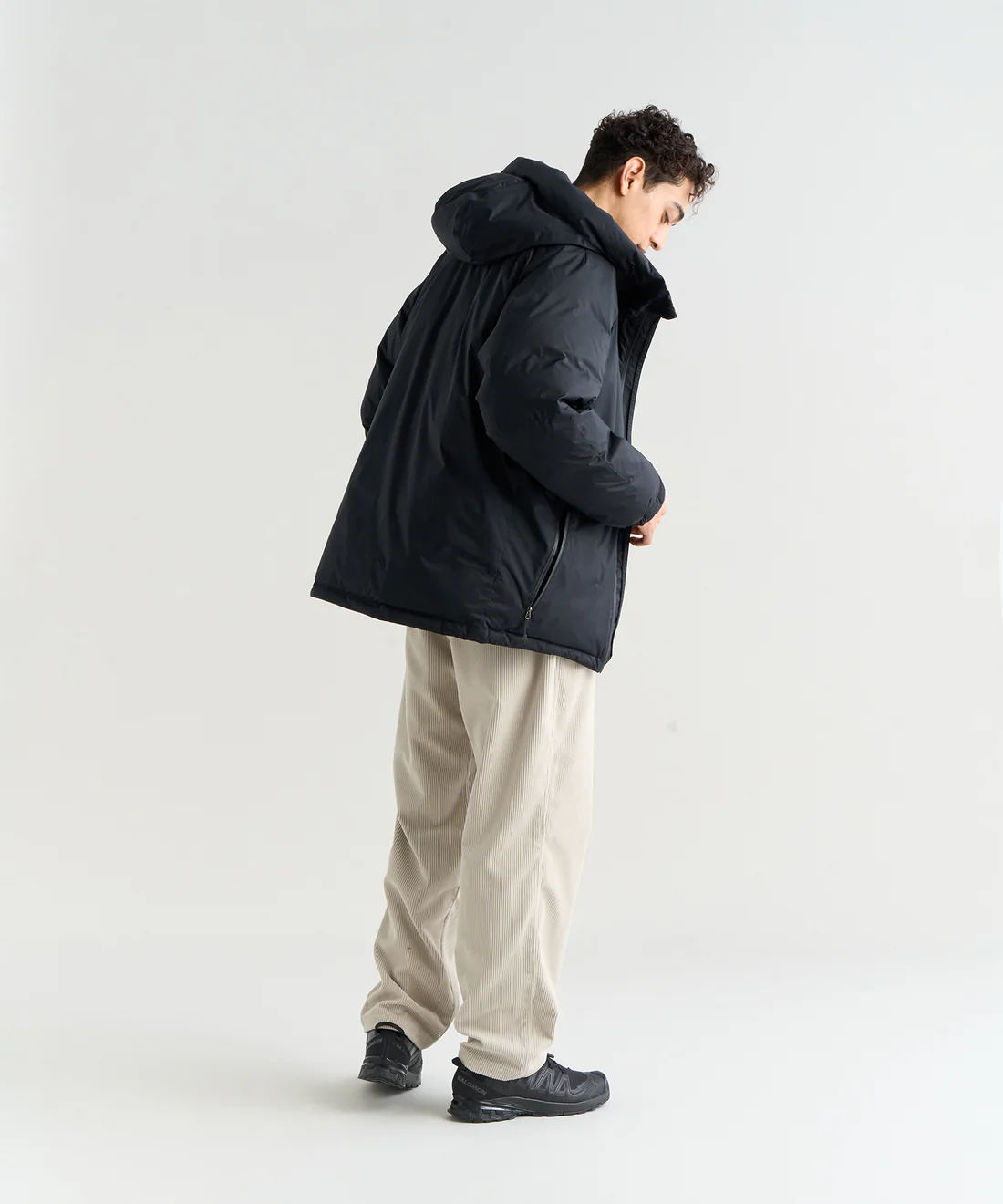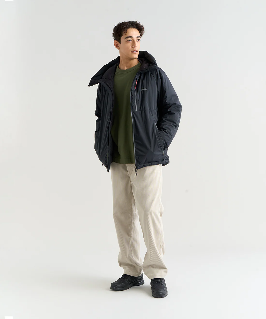 ややゆとりのあるシルエットは厚手のインナーを重ねても動きやすくなっています。